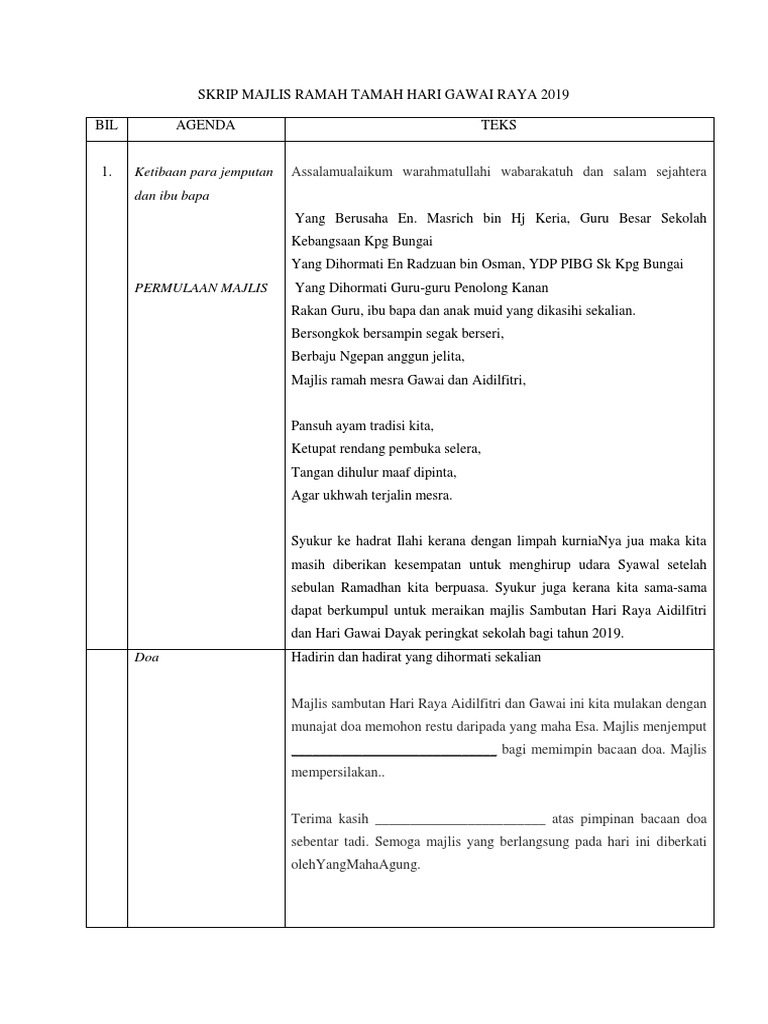 Skrip Majlis Ramah Tamah Hari Gawai Raya 2019 Pdf